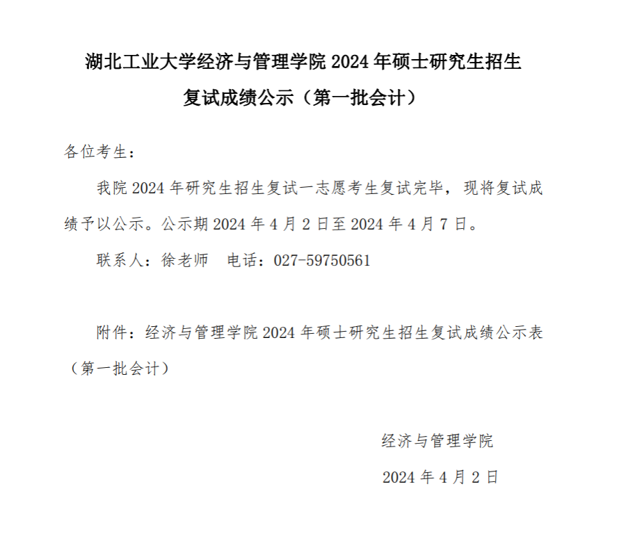 william威廉 2024 年硕士研究生招生复试成绩公示(第一批会计)