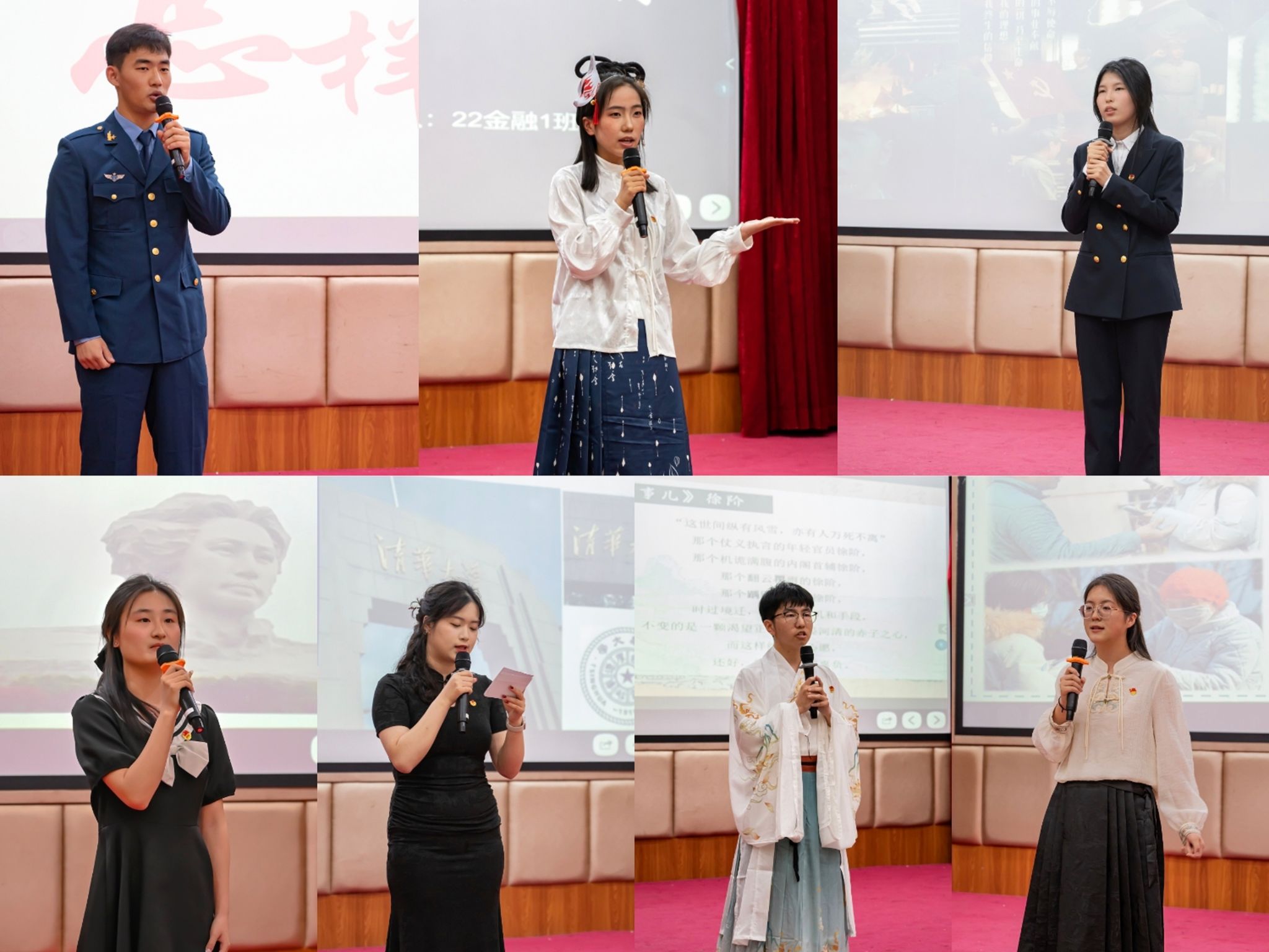 比赛现场,7位参赛选手结合自身经历,聚焦参军入伍、非遗传承、百年党史等主题开展演讲,充分展现了新时代青年昂扬向上、朝气蓬勃的精神风貌,赢得了评委嘉宾们的一致好评,引发了现场观众的强烈共鸣。