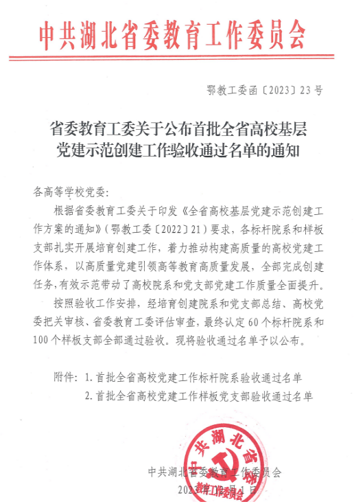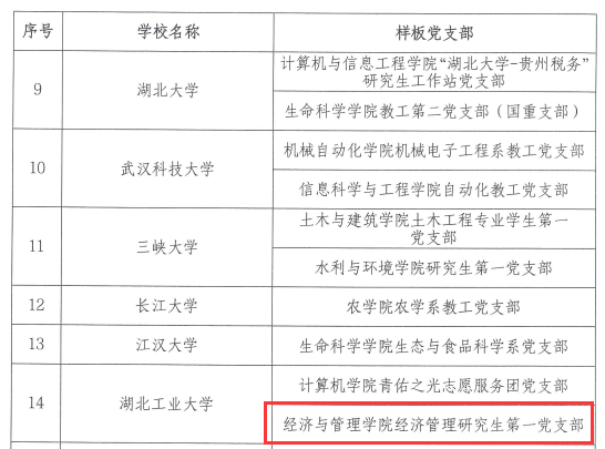 近日,湖北省教育工作委员会公布首批全省高校基层党建示范创建工作验收结果,公司经济管理研究生第一党支部顺利通过验收。