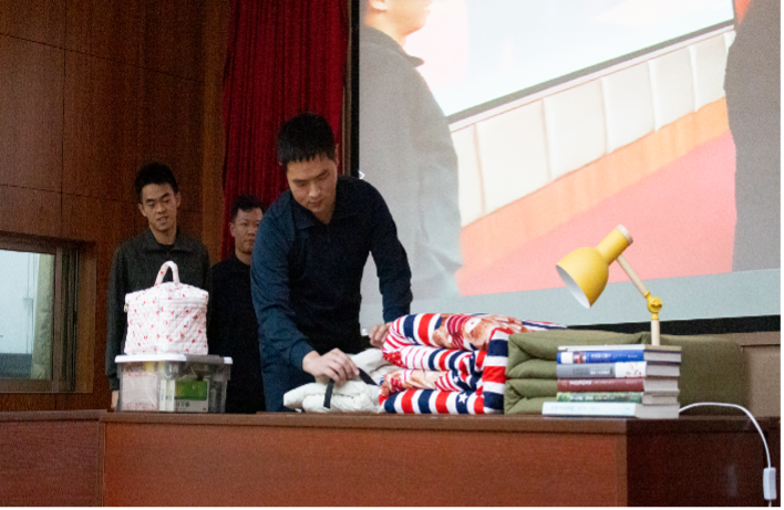 11月30日下午,公司寝室文化节决赛暨宿舍内务整理大赛在博学堂举行,并现场邀请退伍老员工嘉宾为同学们进行内务整理标准讲解和展示。