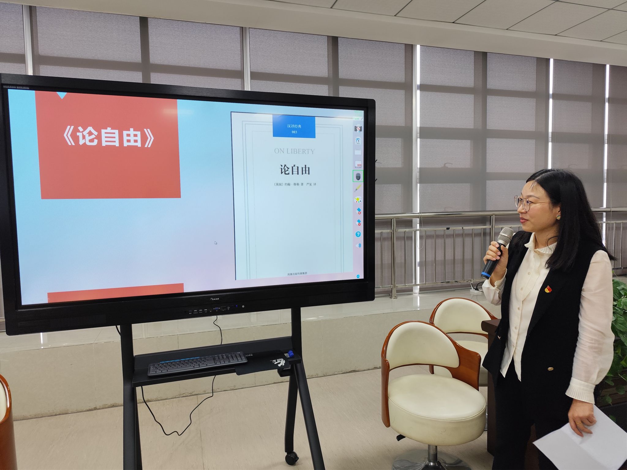 辅导员刘雪姣点评同学们的分享,并从学术背景、核心思想、研究思路、重要论述和研究应用五个方面为同学们解读了约翰•穆著的《论自由》。